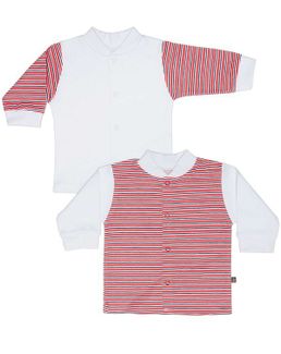 Комплект кофточек с длинным рукавом торговой марки "Kiddy bird" белый/красная полоска изготовлен из натуральной ткани, приятной к телу малыша и не вызывающей раздражения на нежной коже ребенка. Кофточки с широкими мягкими манжетами и воротничком-стойкой. Спереди застегиваются на кнопки, благодаря чему их легко одевать и снимать. Размеры 56-62 представлены швами наружу. Минимальная сумма заказа 1500 руб. Возможен самовывоз. Есть доставка.