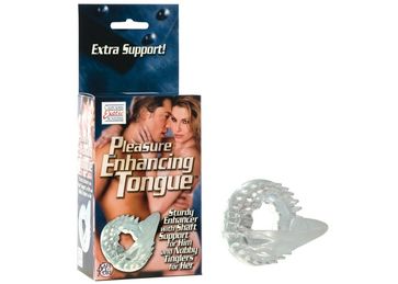 Прозрачное кольцо из силикона с мягкими шипами и большим язычком, который может выполнять роль эректора, также дополнительно расширяя пенис., California Exotic Novelties, Америка, TPR (термопластичная резина), Прозрачный, минимальная сумма заказа 1000 руб. Есть доставка.