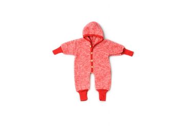Комбинезон с капюшоном, флис шерстяной 100%, красный меланж, р.86 92