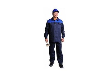Костюм состоит из куртки и брюк. Куртка с центральной бортовой застёжкой на пуговицы, нагрудным и боковыми карманами, отложным воротником. Кокетка из ткани контрастного цвета. Брюки с поясом и накладными карманами. Рукава усилены налокотниками, брюки – наколенниками. Цвет: тёмно–синий с васильковой отделкой, тёмно–синий с красной отделкой Ткань: смесовая, 50%–х/б, 50%–п/э, плотоность 210 гр. Размер: с 44–46 по 60–62 Рост: 170–176, 182–188 None