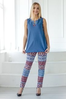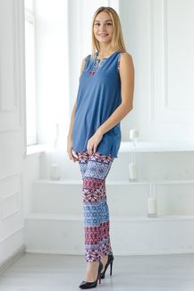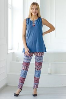 Костюм трикотажный туника+брюки - Паула | синий меланж