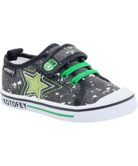 Кеды Котофей черные с зеленым - практичная и модная обувь для спорта и прогулок. Легкая и гибкая подошва с защищенной носовой частью имеет анатомическую форму, что создает максимальный комфорт при носке. Фиксируются на ноге при помощи липучки. Украшены декоративными шнурками. Минимальная сумма заказа 1500 руб. Возможен самовывоз. Есть доставка.