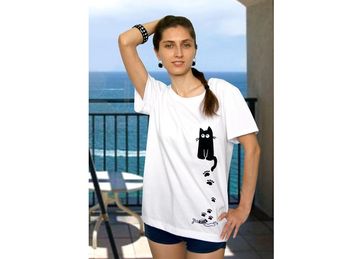 Белая футболка свободного стиля из лёгкого тонкого хлопкового трикотажа. модель имеет классический футболочный крой, что отлично подойдёт как к шортам или джинсам, так и к юбке или бриджам. захватите её в отпуск или на отдых, она не займёт много места в чемодане, и станет спасительницей для долгих экскурсий или просто прогулок под жарким солнцем. она укроет плечи и тело от солнца, а ткань будет хорошо пропускать воздух, позволяя коже дышать. эта универсальная вещь сочетается с любыми цветами одежды. белый цвет футболки придаст нарядности вашему образу, а игривый рисунок с котёнком добавит настроения! в этой футболке вы будете неординарной модницей! длина по спинке около 64 см на фото на модели размер изделия 42 российские размеры: 42,44,46,48 None Есть доставка.