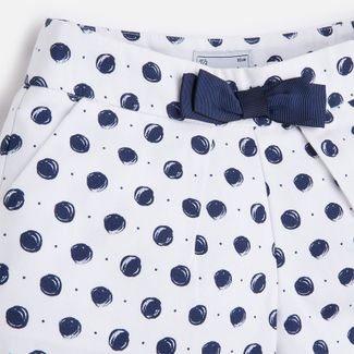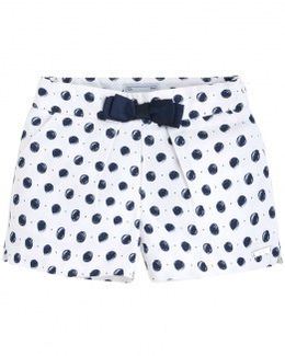 Шорты для девочки Mayoral белые в синий горошек - нежные элегантные шортики винтажного вида для летнего сезона. Они отлично сочетаются с майками, футболками, блузками. Модель с фронтальными косыми карманами, поясом на резинке и боковой застежкой на скрытую молнию. Интересный крой и дизайн модели делают её нарядной и оригинальной, придавая образу малышки утонченную женственность. Возраст ребенка: от 2 до 8 лет. Наличные, Visa/MasterCard, Яндекс.Деньги, WebMoney Возможен самовывоз. Есть доставка.