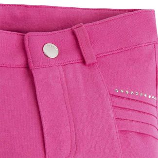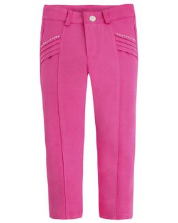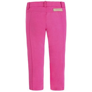 Леггинсы для девочки Fuchsia Mayoral - стильная трикотажная модель с отстроченными стрелками, декоративными планками и небольшими заклепками. Снабжена застежкой-молнией и шлевками для ремня.