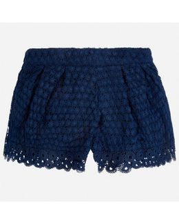 Шорты для девочки Mayoral изготовлены из синтетической ажурной ткани и декорированы кружевом по низу. Спереди и сзади на поясе заложены 4 встречные складки. Кроме того, спереди на поясе есть металлическая нашивка с фирменной надписью. Наличные, Visa/MasterCard, Яндекс.Деньги, WebMoney Возможен самовывоз. Есть доставка.