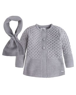 Жакет Mayoral для девочки серый изготовлен из акриловой пряжи, отличающейся высокими износостойкими свойствами. Два вида вязки придают модели стильный и элегантный вид, в комплект также входит шарф. Горловина жакета округлая, дополняют композицию 3 крупных пуговицы. Наличные, Visa/MasterCard, Яндекс.Деньги, WebMoney Возможен самовывоз. Есть доставка.