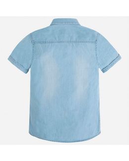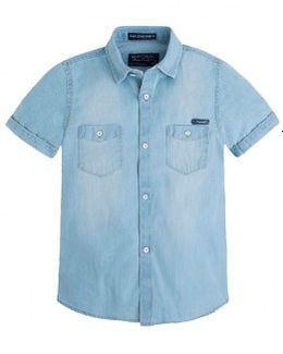 Джинсовая рубашка Mayoral с коротким рукавом и двумя нагрудными карманами отличное решение для лета. Манжеты декорированы тканью с орнаментом. На груди нашита металлическая фирменная лейба. Кармашки на пуговках. Наличные, Visa/MasterCard, Яндекс.Деньги, WebMoney Возможен самовывоз. Есть доставка.