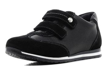 Полуботинки Парижская коммуна by Elegami с велюровыми вставками черные - классическая модель для мальчика, выполненная в строгом черном цвете, что позволяет удачно сочетать ее с практически с любыми брюками. Полуботинки изготовлены из перфорированной кожи со вставками из велюра и контрастной отстрочкой. Застегиваются на две липучки. Наличные, Visa/MasterCard, Яндекс.Деньги, WebMoney Возможен самовывоз. Есть доставка.