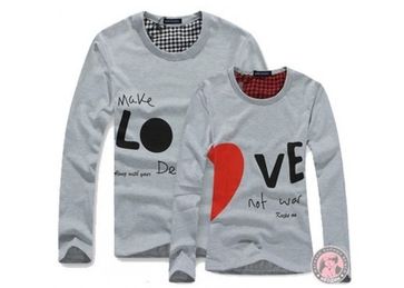 Парные футболки с длинным рукавом «занимайтесь любовью, а не войной» артикул: t0013 торговая марка: неодин страна изготовитель: китай цвет: серый комплект парных футболок с длинным рукавом. футболки выполнены из 100% хлопка с двусторонним принтом.