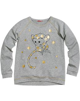 Джемпер для девочки 6-12 лет Мартышка Пеликан - базовая модель с большим принтом и строчками золотистого цвета. Для детей от 6 до 12 лет. Минимальная сумма заказа 1500 руб. Возможен самовывоз. Есть доставка.