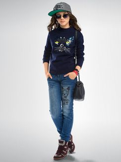 Закажите Pelican для девочки с пайетками и вышивкой синий у компании BABADU в России на портале Alloy: