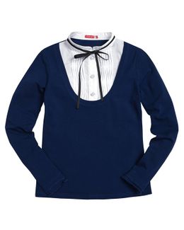 Джемпер Pelican с вставкой имитирующей блузку - отличное решение для школы. Воротничок-стойка подчёркнут контрастной лентой, которая завязывается на бант. Модель декорирована репсовой лентой и перламутровыми пуговками. Минимальная сумма заказа 1500 руб. Возможен самовывоз. Есть доставка.