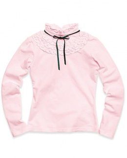 Джемпер Pelican в верхней части декорирован стразами и рюшами из трикотажа. Воротник-стойка также декорирован рюшем и подчёркнут контрастной бархатной ленточкой. Модель отлично подходит для школьных будней и хорошо сочетается с сарафаном или жилетом. Минимальная сумма заказа 1500 руб. Возможен самовывоз. Есть доставка.