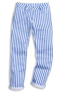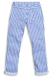 Облегченные брюки Pelican в полоску для девочек. Стильная модель из коллекции "Девичий круиз". Брюки прямого покроя, снизу можно подвернуть. На карманах стильные заклепки с сердечками. Наличные, Visa/MasterCard, Яндекс.Деньги, WebMoney Возможен самовывоз. Есть доставка.