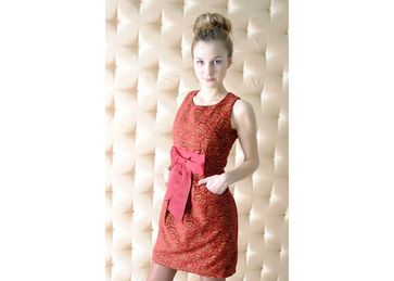 Оригинальное платье-футляр из плотной ткани темно-красного цвета с набивным золотистым орнаментом. спереди декорировано роскошным красным бантом. изящества и удобства добавляют два небольших кармана. сзади застегивается на молнию. платье подойдет как для выходов в свет, так и для прогулок в прохладные дни. благодаря плотности ткани его можно носить с теплой кофточкой под низ и колготками. размер м None Есть доставка.