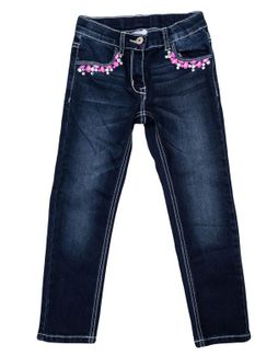 Джинсы прямого кроя для девочки из коллекции Малиновое настроение. Модель выполнена в темно-синем цвете, с потертостями на брючинах, ярко-выраженными строчками и декором в виде крупных страз. Наличные, Visa/MasterCard, Яндекс.Деньги, WebMoney Возможен самовывоз. Есть доставка.
