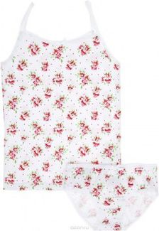 Очаровательный комплект из коллекции Сладкие ягоды очень понравится маленьким принцессам. Майка на тоненьких бретельках, а трусы с ажурной резинкой. Комплект декорирован красочным принтом. Минимальная сумма заказа 1500 руб. Возможен самовывоз. Есть доставка.