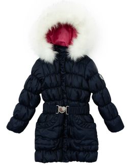 Стеганое зимнее пальто для девочки из коллекции Морозные узоры. Модель удлиненного силуэта, приталенного кроя, с поясом. Пальто легкое, тёплое и функциональное. Оригинальности изделию добавляет милая пряжка в форме сердечка и контрастный белый мех на капюшоне. Наличные, Visa/MasterCard, Яндекс.Деньги, WebMoney Возможен самовывоз. Есть доставка.