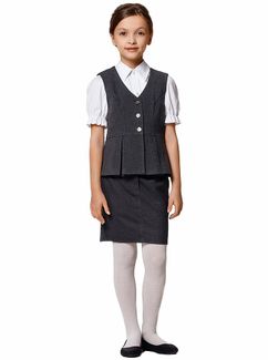 Модный и практичный жилет на девочку из коллекции дизайнерской школьной формы "President School". Выполнен из костюмной ткани, украшен отрезной баской со встречными складками. Прекрасно сочетается с разными моделями и цветами юбок коллекции. Минимальная сумма заказа 1500 руб. Возможен самовывоз. Есть доставка.