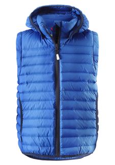 Пуховик 2 в 1 Reima Fleet blue - легкая модель для детей от 4 до 10 лет. Снабжена съемным капюшоном, отстегивающимися рукавами, 2 боковыми карманами, застежкой-молнией и светоотражающими элементами. Материал верха ветронепроницаемый и водоотталкивающий. Утеплитель - пух/перо. Цена со скидкой действует до 31 марта Возможен самовывоз. Есть доставка.