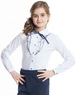 Блузка для девочки из коллекции Школа 2016 S Cool украшена рюшами и атласной темно-синей тесьмой в белый горошек под воротником. Белый цвет придает нарядности. Блузка выглядит женственно и стильно. Застегивается на бело-синие пуговицы. Наличные, Visa/MasterCard, Яндекс.Деньги, WebMoney Возможен самовывоз. Есть доставка.