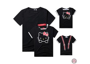 Семейные футболки "hello kitty" с коротким рукавом для родителей и дочки артикул: ft0008 торговая марка: cutiplay страна дизайна: корея страна изготовитель: китай цвет: чёрный комплект семейных футболок с коротким рукавом для мамы, папы и дочки с культовым японским героем из сериала hello kitty хелло китти). материал - хлопок.