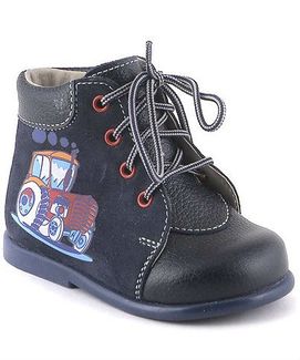 Ботинки темно-синие с декором Трактор – это первая обувь для вашего малыша. Ботинки входят коллекцию «Первый шаг» и имеют рекомендацию детского ортопедического института им. Г.И.Турнера. Модель создана на основе результатов тест-экспертизы колодок научного центра им. Г.А.Альбрехта. Минимальная сумма заказа 1500 руб. Возможен самовывоз. Есть доставка.