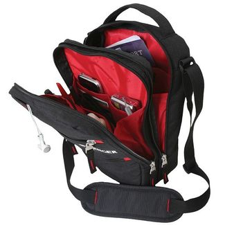 Сумка-планшет в деловом стиле от WENGER Изделие предназначено для безопасной транспортировки деловой документации и электронных гаджетов. Высокопрочный полиэстер M2 в чёрном цвете позволил дизайнерам бренда создать удобную и надёжную для деловых людей сумку-планшет, которая элегантно смотрится в городских условиях. Компактные размеры сумки – 22x9x29 см, выгодно скрывают вместительный объём изделия. Сумка-планшет содержит 2 основных отделения, 6 дополнительных карманов на молнии и липучке, а также специальные отделения для рабочих аксессуаров и пишущих принадлежностей. Сумка имеет эргономичную ручку для переноски и плечевой ремень с широким мягким подплечником. Характеристики: