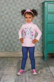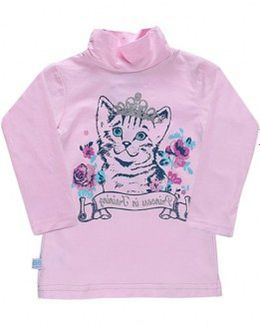 Водолазка для девочки Sweet Berry Baby Princess розовая - очаровательная модель с высоким воротником. Украшена милым принтом с котиком. Для детей от 12 месяцев до 3 лет.