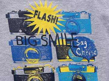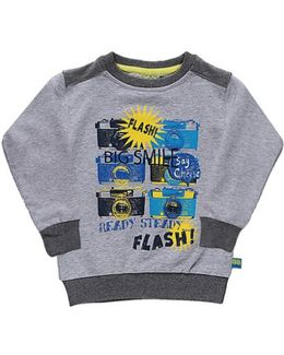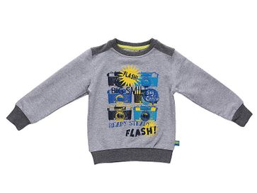 Толстовка для мальчика Sweet Berry Baby Say Cheese серая - комфортная трикотажная модель с широкими манжетами, идущими по краю рукавов и краю изделия. Декор - большой принт. Для детей от 12 месяцев до 3 лет.
