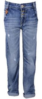 Джинсы для мальчика с выточками на коленях светлые Vitacci - стильная модель с пятью карманами, оригинальной застежкой и потертостями. Для детей от 8 лет.