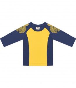 Стильный лонгслив из коллекции Гусарская баллада. Модель выполнена в синем цвете, с контрастной вставкой спереди. На плечах размещен принт в виде эполетов гусарского мундира. Лонгслив выполнен из качественной натуральной ткани, хорошо носится и надолго сохраняет свой вид. Минимальная сумма заказа 1500 руб. Возможен самовывоз. Есть доставка.