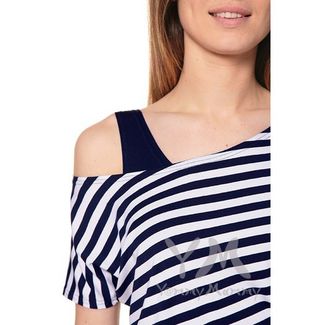 Y@mmyMammy Блуза с топом на одно плечо темно-синяя белая полоса 234.1.10