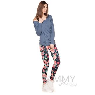 Y@mmyMammy Джегинсы универсальные цвет джинса розовые цветы 416.2.6