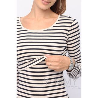 - Y@mmyMammy Лонгслив бежевый синий полоска 207.2.122 в каталоге Одежда для будущих мам в России;