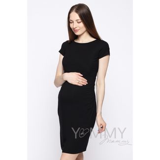 - Y@mmyMammy Платье из модала с коротким рукавом вырез "лодочка" со сборкой по бокам черное 341.1.4 в каталоге Одежда для будущих мам в России;