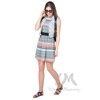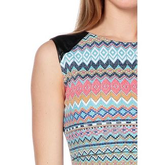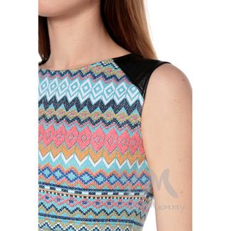 Y@mmyMammy Платье с кожаными вставками на плечах бирюзовый коралловый "зиг-заг" 344.0.1
