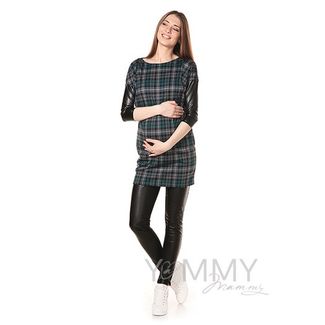 - Y@mmyMammy Платье-туника темно-зеленый серый клетка с рукавами из экокожи 333.2.15 в каталоге Одежда для будущих мам в России;