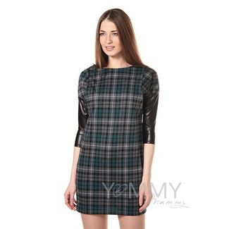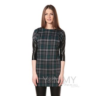 - Y@mmyMammy Платье-туника темно-зеленый серый клетка с рукавами из экокожи 333.2.15 по выгодной цене 2 122 р. руб.;