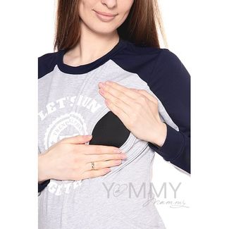 - Y@mmyMammy Толстовка из футера с принтом серый меланж темно-синий 202.2.90 в каталоге Одежда для будущих мам в России;