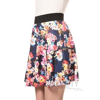 Y@mmyMammy Юбка универсальная темно-синяя разноцветные цветы 454.1.3