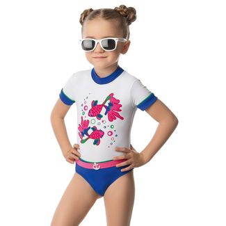Оригинальный купальник закрытого типа со стойкой и короткими облегающими рукавами на классической пройме. Для удобства эксплуатации модель фиксируется на спине молнией-змейкой. Эффектное сочетание классических цветов и яркая подкладка прекрасно смотрятся на матовой микрофибре. Основными элементами декора являются большой поместный принт «Рыбки» и розовый пояс по передней детали с нашивкой в виде якоря. Купальник прекрасно подходит для активного отдыха на пляже и в аквапарке. None