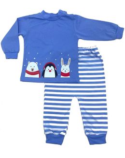 Детский костюм новорожденным из 2-х предметов Мишка северный синий выполнен из натурального хлопка. Дышащая ткань - курилка идеальна для нежной кожи ребенка. Кофточка выполнена из голубого трикотажного полотна с эмблемкой мишки северного и его друзей. Удобный вырез кофты и рукава на манжетах позволяет легко и удобно одеть ребенка. Штанишки имеют открытую нижнюю часть ножки, что очень удобно для быстро растущего малыша в первые месяцы жизни. Мягкая и широкая резинка и расширенная часть штанишек в области таза удобны для смены подгузника во время переодевания и на прогулке. Цвет - голубой