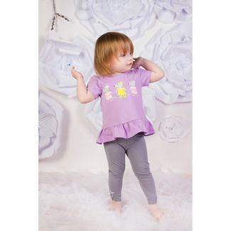 Серые лосины в мелкие горошки со сборкой на штанинах украшены бантиками-крошками. Сделаны лосины из ткани с большим содержанием хлопка и небольшим добавлением лайкры. None