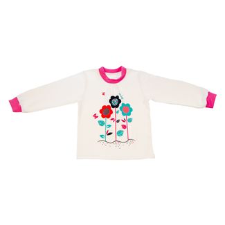 Пижама для девочки с ярким принтом "Цветы" на штанишках и шелкографией, выполненной водными красками, на кофточке. В размерах 68, 74, 80 предусмотрены кнопки в плечевом шве для удобного надевания пижамки. None Можно купить без предварительного заказа.