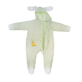 Удобный комбинезон из мягкого велюра. На капюшоне милые заячьи ушки и резинка на лбу, не дающая капюшону сползти. Застежки – кнопки идут по всей длине. Украшен аппликациями с изображением заек. None Можно купить без предварительного заказа.