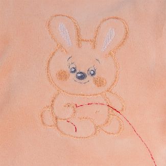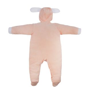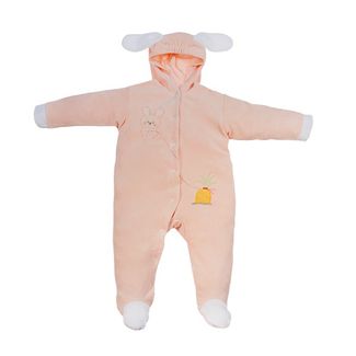 Удобный комбинезон из мягкого велюра. На капюшоне милые заячьи ушки и резинка на лбу, не дающая капюшону сползти. Застежки – кнопки идут по всей длине. Украшен аппликациями с изображением заек. None Можно купить без предварительного заказа.