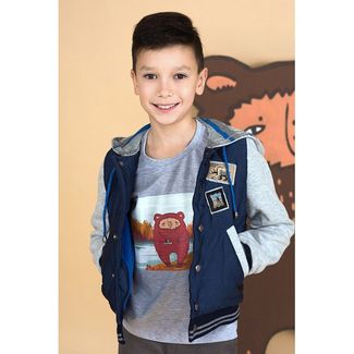Комбинированный бомбер с утепленными полочками и спинкой с нашивками. Капюшон и рукава выполнены из плотного трикотажа с начесом. Застегивается на кнопки. Имеет боковые карманы. Можно носить зимой как "поддевку" под куртку, а весной как легкую куртку.Внимание! Фактический цвет изделия может незначительно отличаться от цвета на фотографии в связи с особенностями цветопередачи различных цифровых устройств. None