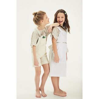 Джинсовый комбинезон с шортами бежевого цвета из чистого хлопка. Лямки регулируются, из кармашка на груди выглядывает милая фигурка панды. Можно комбинировать с футболкой арт LG 002. None